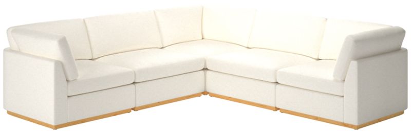 Sectional sofa's clean, minimalist-profilewhite oak plinth base and cloud-like comfort embodies Ross Cassidy's signature style of understated luxury. Plush cushions are generously filled with a fluffy mix of feathers, down and fibers to create a soft place to sink into. Performance boucle performance upholstery in ivory adds tonal texture. Built by hand in Mississippi using kiln-dried hardwood, sectional will bring style to the living space for years to come. CB2 exclusive.
