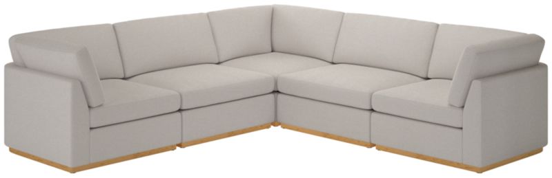 Sectional sofa's clean, minimalist-profilewhite oak plinth base and cloud-like comfort embodies