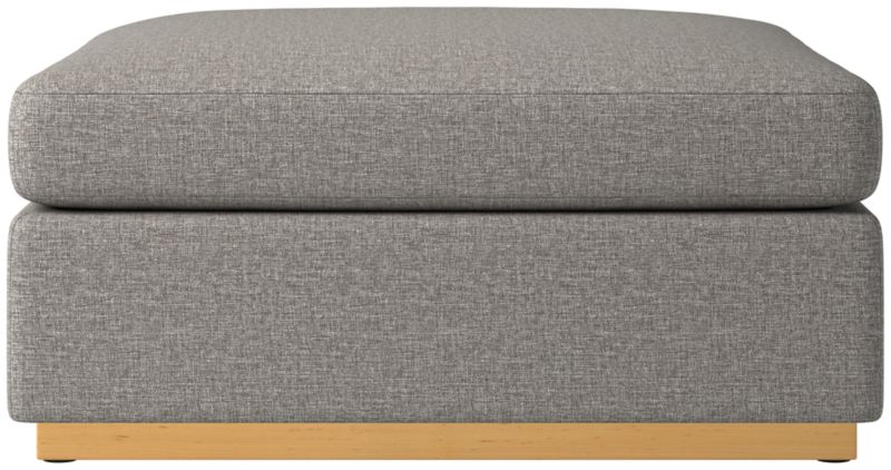 Ottoman's clean, minimalist-profile white oak plinth base and cloud-like comfort embodies Ross Cassidy's signature style of understated luxury. Plush cushion is generously filled with a fluffy mix of feathers, down and fibers to create a soft place to rest. Performance boucle in ivory adds tonal texture. Built by hand in Mississippi using kiln-dried hardwood, ottoman coordinates with other Stormo pieces. CB2 exclusive.