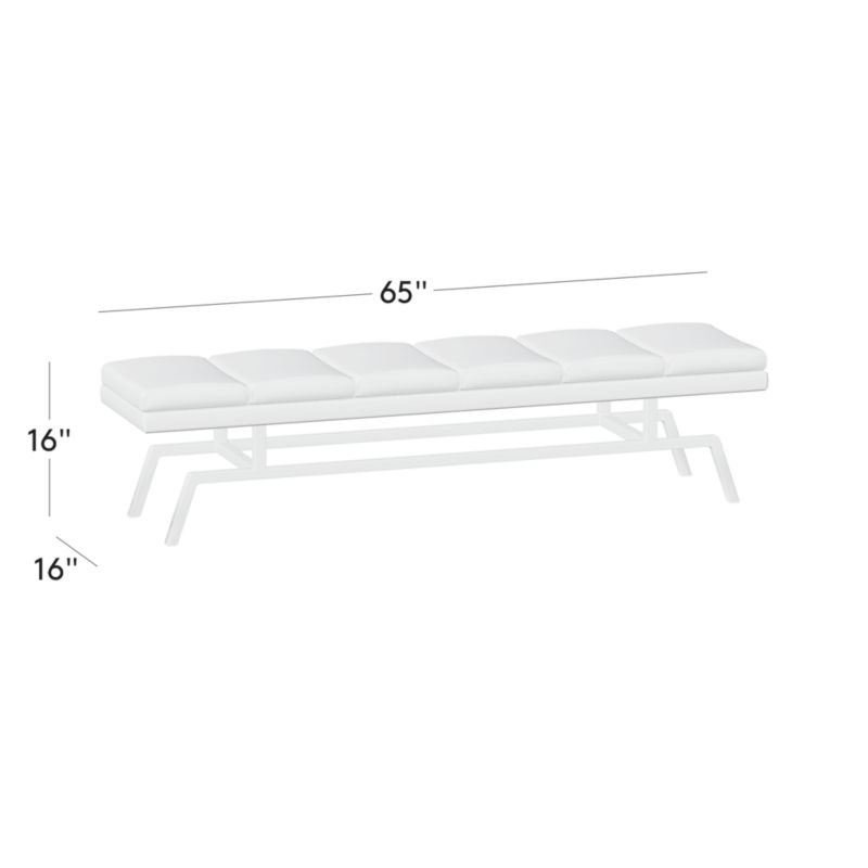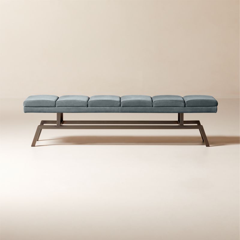 Designed by NYC-based David Aguirre, light blue suede bench is an inviting accent for the end of the bed or entryway. The base's crisp angles and sleek black finish serve as a counterpoint to the supple, channel-tufted suede seat. An heirloom in the making as the suede will age and soften, developing a beautiful patina over time. CB2 exclusive.