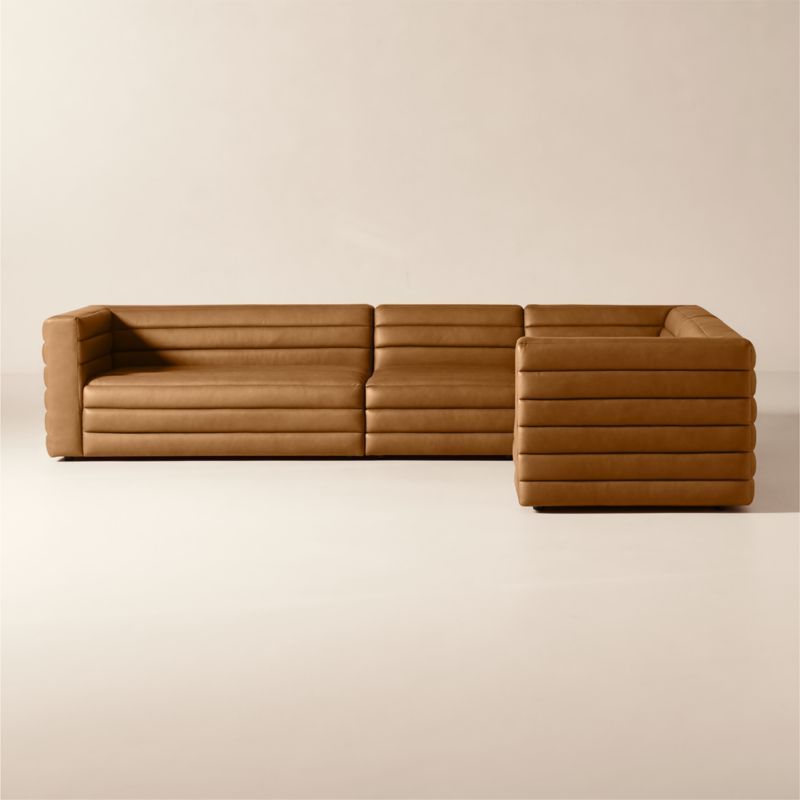 Strato 4-Piece L-Shaped Channeled Brown Leather Sectional SofaStrato 3-Piece L-Shaped Channeled Brown Leather Sectional Sofa