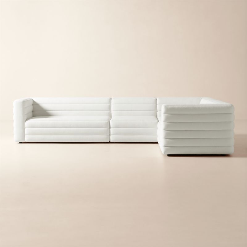 View CartStrato 4-Piece L-Shaped Channeled Ivory Performance Fabric Sectional Sofa