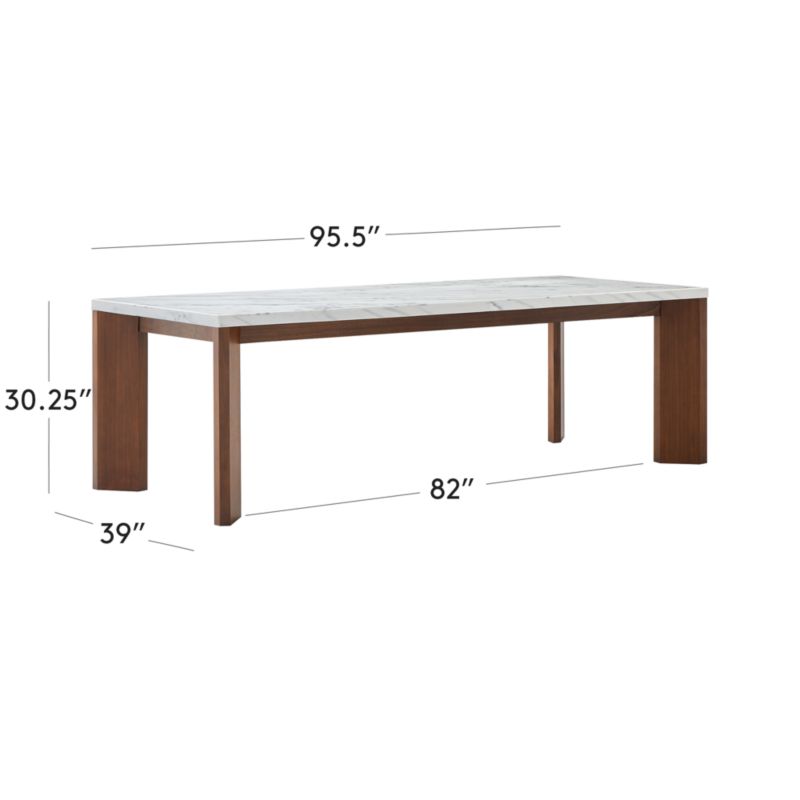 Sydney 95" Rectangular Carrara Marble Dining Table with Walnut Legs