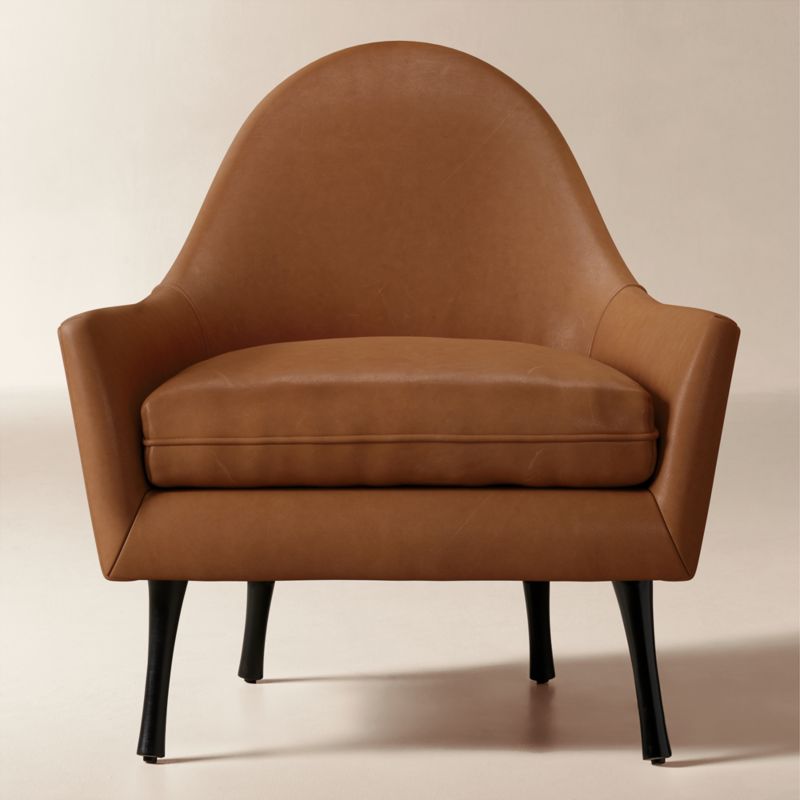 Originally designed by Paul McCobb in 1962 for the Widdicomb Furniture Company, this lounge chair revisits his Symmetric collection—defined by its graceful curves, slender profile and timeless proportion. Upholstered in rich, luxurious leather with a welt, the design merges midcentury refinement with modern American craftsmanship. Resting on black tapered legs, each chair is hand-assembled in North Carolina, honoring McCobb's legacy of thoughtful, sculptural simplicity. CB2 exclusive.