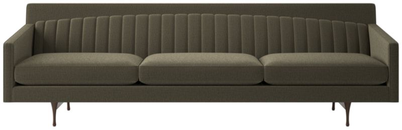 Paul McCobb in 1962 is characterized by clean lines, attention to detail and a sense of visual lightness that became a trademark of his work. Inspired by Shaker design, the sofa debuted with a channel-tufted back and slim walnut legs that made the piece appear weightless. Falling out of production after McCobb's death in 1969, the original design became highly sought after. From its sculptural curves to the angled arms, our reissue captures every coveted detail. CB2 exclusive.