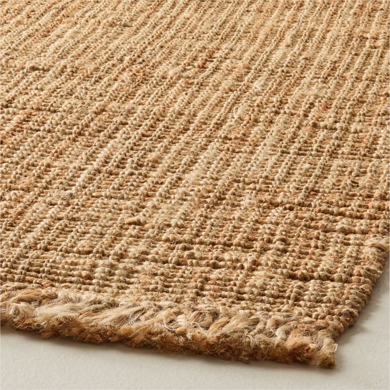 Giving a certain wabi-sabi look, the Tassa flatweave runner rug is woven by hand from thick, golden strands of natural jute, highlighting the material's organic texture and high/low tonal variations. Artisans weave the chunky strands of jute by hand, creating a relaxed weave with a smooth feel underfoot. Natural variations in the jute make each rug unique. CB2 exclusive.