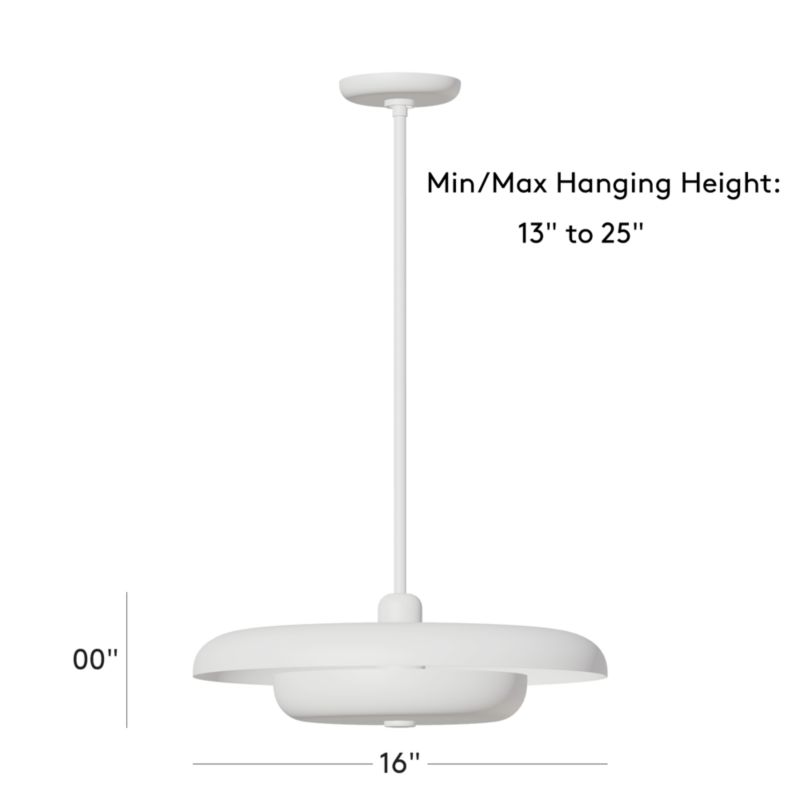 Striking nickel pendant by Los Angeles-based AD100 designer Ross Cassidy embodies modern minimalism. The super-thin shade casts a soft light downward with a smaller diffuser to minimize glare. The nickel finish is unlacquered, offering a living finish that will develop the patina of a vintage find. CB2 exclusive.