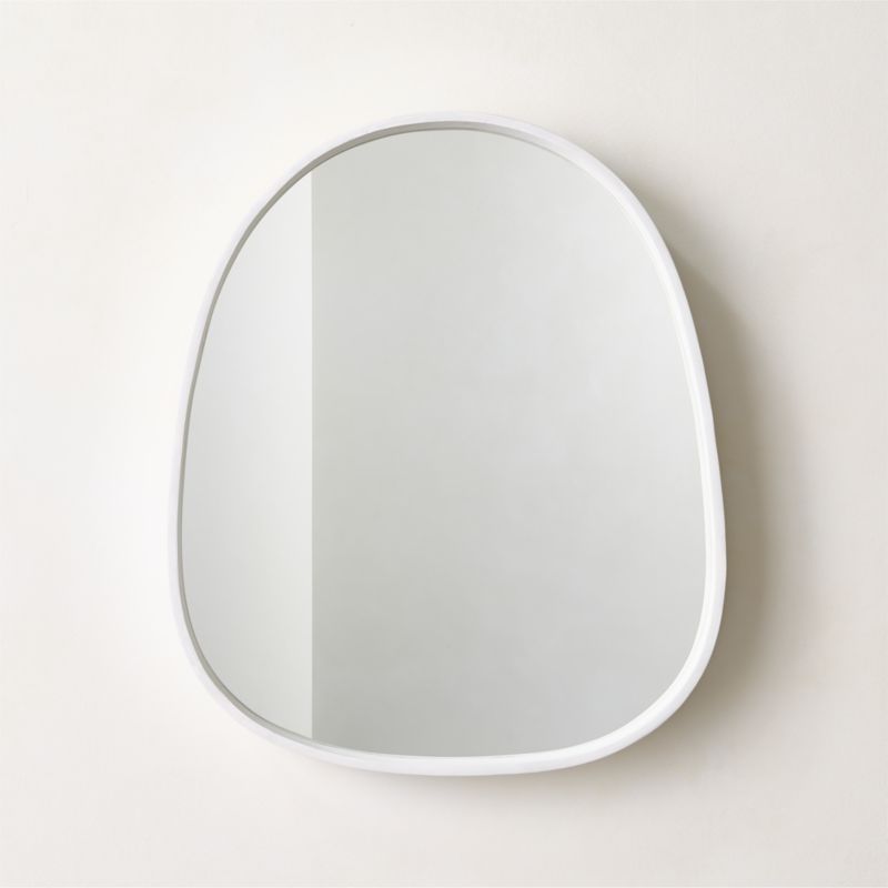 French industrial designer Aurélien Barbry's sculptural wall mirror creates a striking focal point with its organic form and textured, plaster-like finish. When paired with the other Tinos sizes, the mirrors hang like clouds in the sky, adding light and movement to transform a space. CB2 exclusive.
