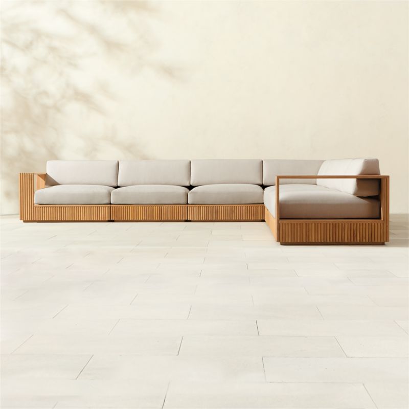 View CartTopia 7-Piece L-Shaped Teak Outdoor Sectional Sofa with White Sunbrella® Cushions