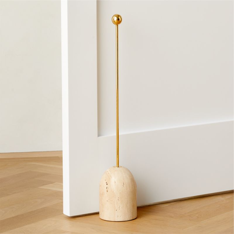 View CartTravertine Doorstop with Unlacquered Polished Brass Handle