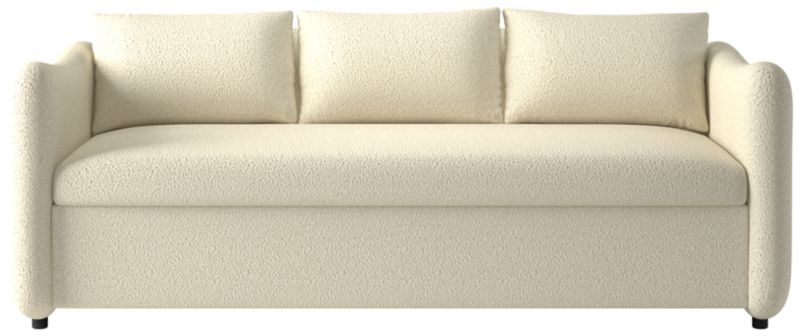 Designed by Mermelada Estudio, plush sleeper sofa offers a tailored yet casual look. The deep frame wraps around the cushioned back and bench seat, gently sloping at the arms. Equipped with a pull-out mechanism and a premium memory foam mattress, the sofa effortlessly stretches out to a queen bed for overnight guests. CB2 exclusive.