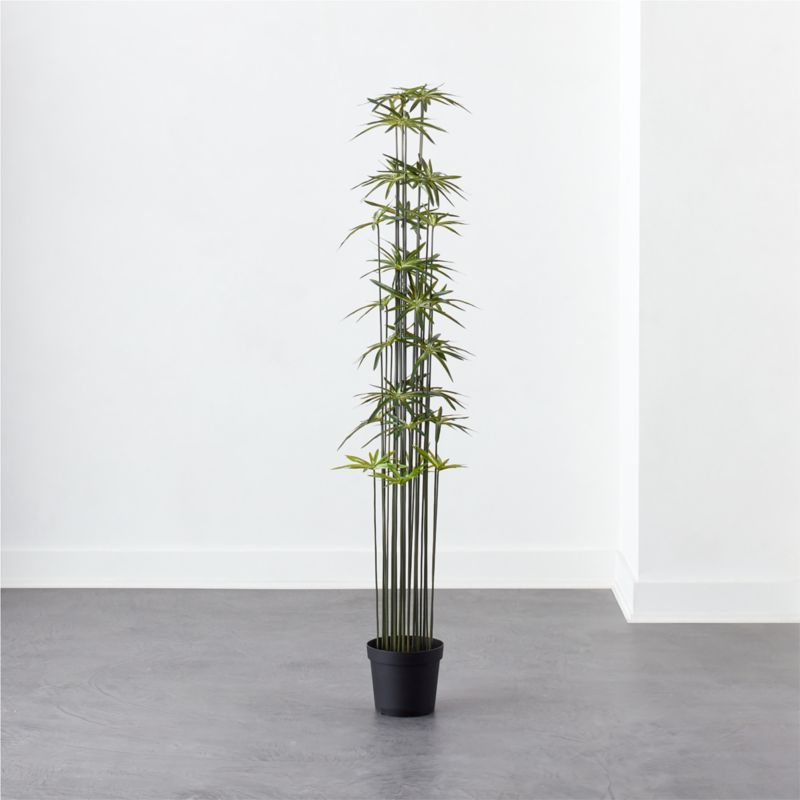 Faux umbrella tree brings to mind bamboo, giving any space major zen vibes. Sized to make a statement and ready to drop into your favorite basket or planter for some extra flair. CB2 exclusive.