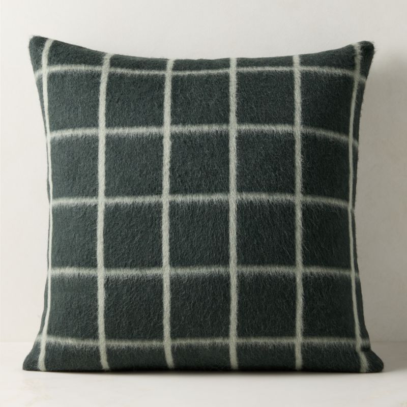 Crafted from a heavyweight blend of superfine alpaca and Peruvian cotton, pillow by Blacksaw offers natural softness and rich texture. Bold, gridded lines in a zero-dye grey color make a modern statement against a smoked green ground. Finished with a hidden zipper and constructed with care, it captures Blacksaw's signature balance of modern simplicity and timeless craft. CB2 pillows include a pillow insert in your choice of feather-down or down alternative.