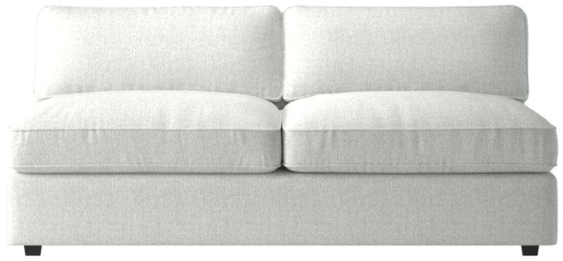 Hand-assembled by skilled artisans in North Carolina, performance velvet armless loveseat is a refreshing take on a minimalist silhouette. Crafted of kiln-dried solid hardwood certified sustainable by the Forest Stewardship Council ® (FSC), the crisp, tightly upholstered frame floats atop recessed legs. Sumptuous cushions are wrapped in a soft blend of feathers and down to provide just enough support. The loveseat is covered in a plush taupe performance velvet made by JB Martin, an award-winning South Carolina textile mill that has been family-run for six generations. Combine with the other Winona sectional pieces to customize an arrangement that suits your space. CB2 exclusive.