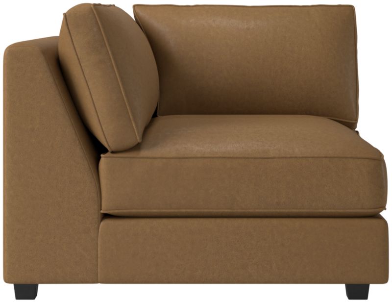 Hand-assembled by skilled artisans in North Carolina, leather corner chair is a refreshing take on a minimalist silhouette. Crafted of kiln-dried solid hardwood certified sustainable by the Forest Stewardship Council ® (FSC), the crisp, tightly upholstered frame floats atop recessed legs with a slim, wrap-around arm that looks neat from any angle. Sumptuous cushions are wrapped in a soft blend of feathers and down to provide just enough support. Combine with the other Winona sectional pieces to customize an arrangement that suits your space. CB2 exclusive.