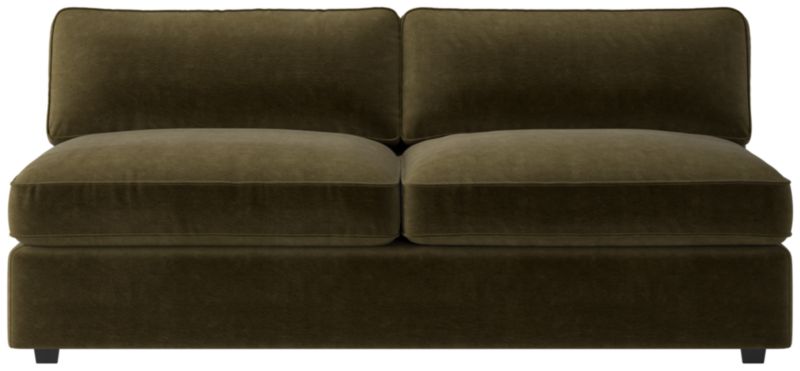 Hand-assembled by skilled artisans in North Carolina, performance velvet armless loveseat is a refreshing take on a minimalist silhouette. Crafted of kiln-dried solid hardwood certified sustainable by the Forest Stewardship Council ® (FSC), the crisp, tightly upholstered frame floats atop recessed legs. Sumptuous cushions are wrapped in a soft blend of feathers and down to provide just enough support. The loveseat is covered in a plush taupe performance velvet made by JB Martin, an award-winning South Carolina textile mill that has been family-run for six generations. Combine with the other Winona sectional pieces to customize an arrangement that suits your space. CB2 exclusive.