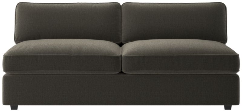 Hand-assembled by skilled artisans in North Carolina, performance velvet armless loveseat is a refreshing take on a minimalist silhouette. Crafted of kiln-dried solid hardwood certified sustainable by the Forest Stewardship Council ® (FSC), the crisp, tightly upholstered frame floats atop recessed legs. Sumptuous cushions are wrapped in a soft blend of feathers and down to provide just enough support. The loveseat is covered in a plush taupe performance velvet made by JB Martin, an award-winning South Carolina textile mill that has been family-run for six generations. Combine with the other Winona sectional pieces to customize an arrangement that suits your space. CB2 exclusive.