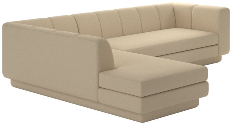 Taking stylistic nods from 1970s Italian design and the designers' own laidback Southern California aesthetic, two-piece sofa by Lawson-Fenning has generous proportions for gathering and relaxing. A deep seat is complemented by a relaxed back with wide-set channel tufting. Each piece is assembled by hand to ensure a level of quality befitting the design. CB2 exclusive.