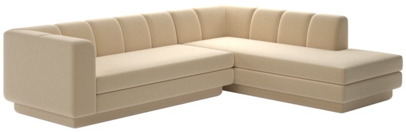 Taking stylistic nods from 1970s Italian design and the designers' own laid-back Southern California aesthetic, two-piece sofa by Lawson-Fenning has generous proportions for gathering and relaxing. A deep seat is complemented by a relaxed back with wide-set channel tufting. Each piece is assembled by hand to ensure a level of quality befitting the design. CB2 exclusive.