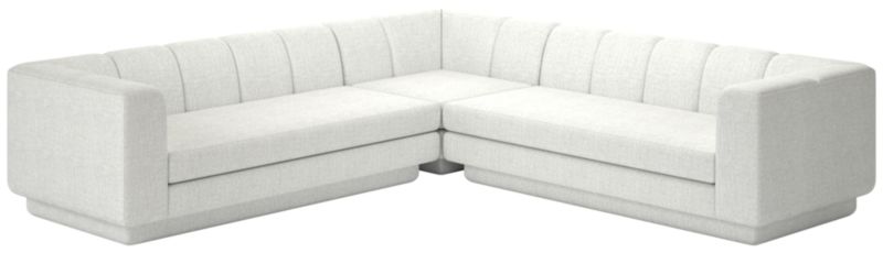 Taking stylistic nods from 1970s Italian design and the designers' own laid-back Southern California aesthetic, three-piece sectional sofa by Lawson-Fenning has generous proportions for gathering and relaxing. A deep seat is complemented by a relaxed back with wide-set channel tufting. Each piece is assembled by hand to ensure a level of quality befitting the design. CB2 exclusive.