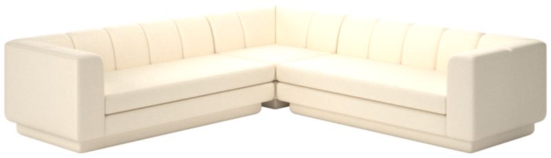 Taking stylistic nods from 1970s Italian design and the designers' own laid-back Southern California aesthetic, three-piece sectional sofa by Lawson-Fenning has generous proportions for gathering and relaxing. A deep seat is complemented by a relaxed back with wide-set channel tufting. Each piece is assembled by hand to ensure a level of quality befitting the design. CB2 exclusive.