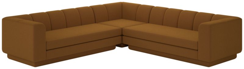 Taking stylistic nods from 1970s Italian design and the designers' own laid-back Southern California aesthetic, three-piece sectional sofa by Lawson-Fenning has generous proportions for gathering and relaxing. A deep seat is complemented by a relaxed back with wide-set channel tufting. Each piece is assembled by hand to ensure a level of quality befitting the design. CB2 exclusive.