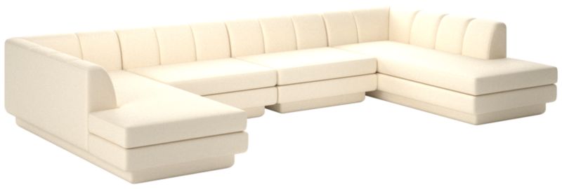 Taking stylistic nods from 1970s Italian design and the designers' own laid-back Southern California aesthetic, four-piece sectional sofa by Lawson-Fenning has generous proportions for gathering and relaxing. A deep seat is complemented by a relaxed back with wide-set channel tufting. Each piece is assembled by hand to ensure a level of quality befitting the design. CB2 exclusive.