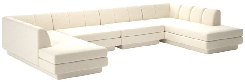 Taking stylistic nods from 1970s Italian design and the designers' own laid-back Southern California aesthetic, four-piece sectional sofa by Lawson-Fenning has generous proportions for gathering and relaxing. A deep seat is complemented by a relaxed back with wide-set channel tufting. Each piece is assembled by hand to ensure a level of quality befitting the design. CB2 exclusive.