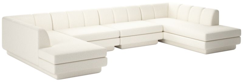Taking stylistic nods from 1970s Italian design and the designers' own laid-back Southern California aesthetic, four-piece sectional sofa by Lawson-Fenning has generous proportions for gathering and relaxing. A deep seat is complemented by a relaxed back with wide-set channel tufting. Each piece is assembled by hand to ensure a level of quality befitting the design. CB2 exclusive.