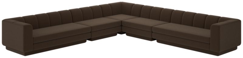 Taking stylistic nods from 1970s Italian design and the designers' own laid-back Southern California aesthetic, five-piece sectional sofa by Lawson-Fenning has generous proportions for gathering and relaxing. A deep seat is complemented by a relaxed back with wide-set channel. Each piece is assembled by hand to ensure a level of quality befitting the design. CB2 exclusive.