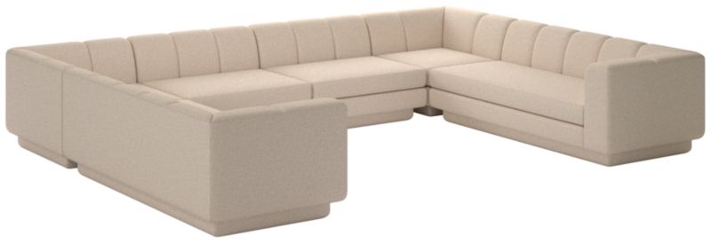 Taking stylistic nods from 1970s Italian design and the designers' own laid-back Southern California aesthetic, six-piece sectional sofa by Lawson-Fenninghas generous proportions for gathering and relaxing. A deep seat is complemented by a relaxed back with wide-set channel tufting. Each piece is assembled by hand to ensure a level of quality befitting the design. CB2 exclusive.