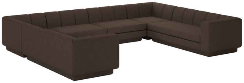 Taking stylistic nods from 1970s Italian design and the designers' own laid-back Southern California aesthetic, six-piece sectional sofa by Lawson-Fenninghas generous proportions for gathering and relaxing. A deep seat is complemented by a relaxed back with wide-set channel tufting. Each piece is assembled by hand to ensure a level of quality befitting the design. CB2 exclusive.