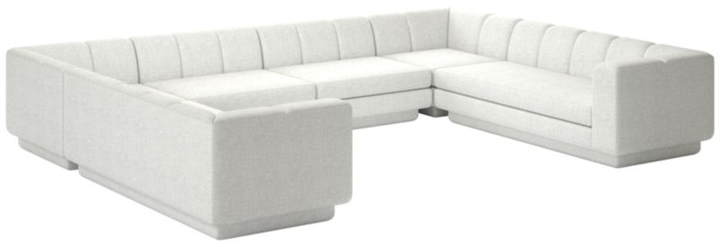 Taking stylistic nods from 1970s Italian design and the designers' own laid-back Southern California aesthetic, six-piece sectional sofa by Lawson-Fenninghas generous proportions for gathering and relaxing. A deep seat is complemented by a relaxed back with wide-set channel tufting. Each piece is assembled by hand to ensure a level of quality befitting the design. CB2 exclusive.