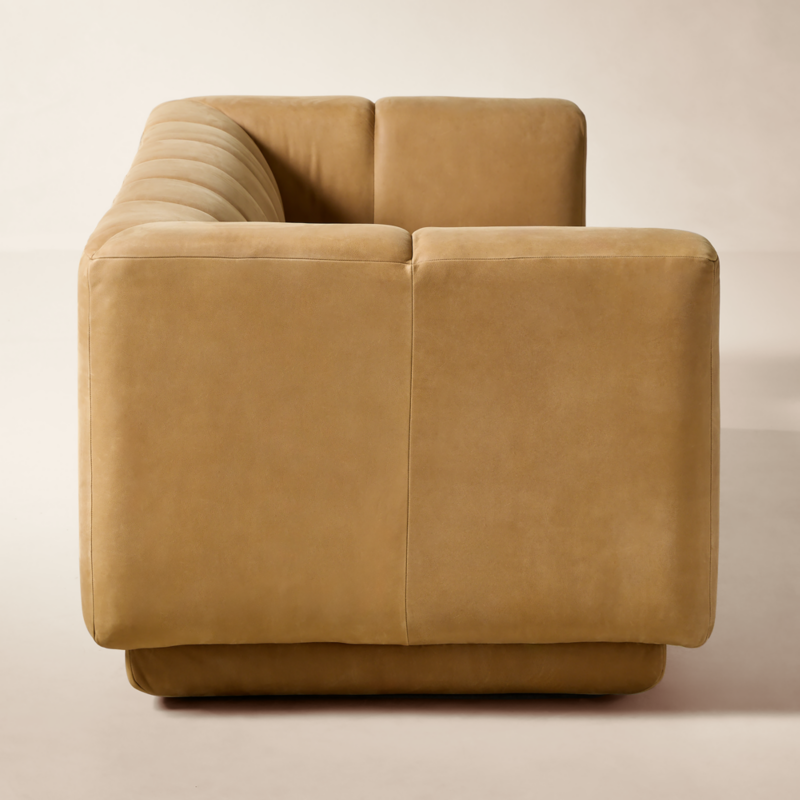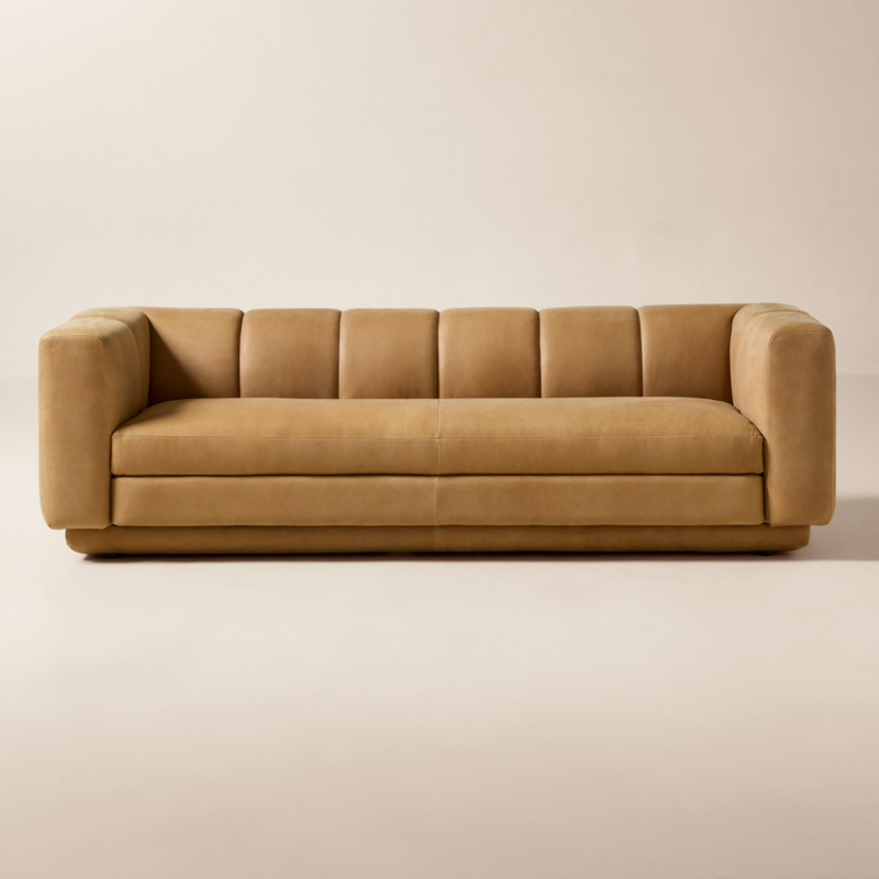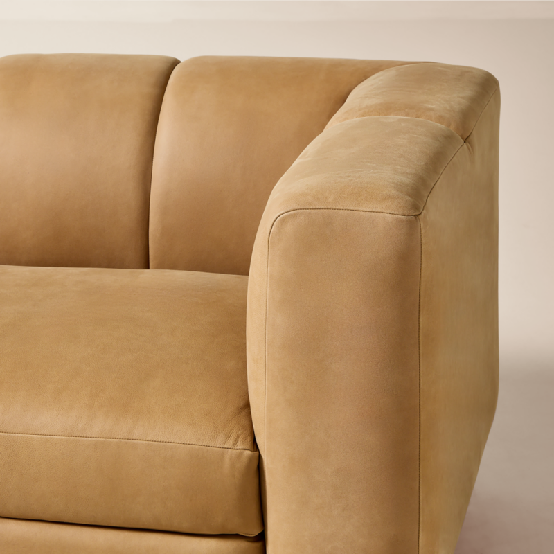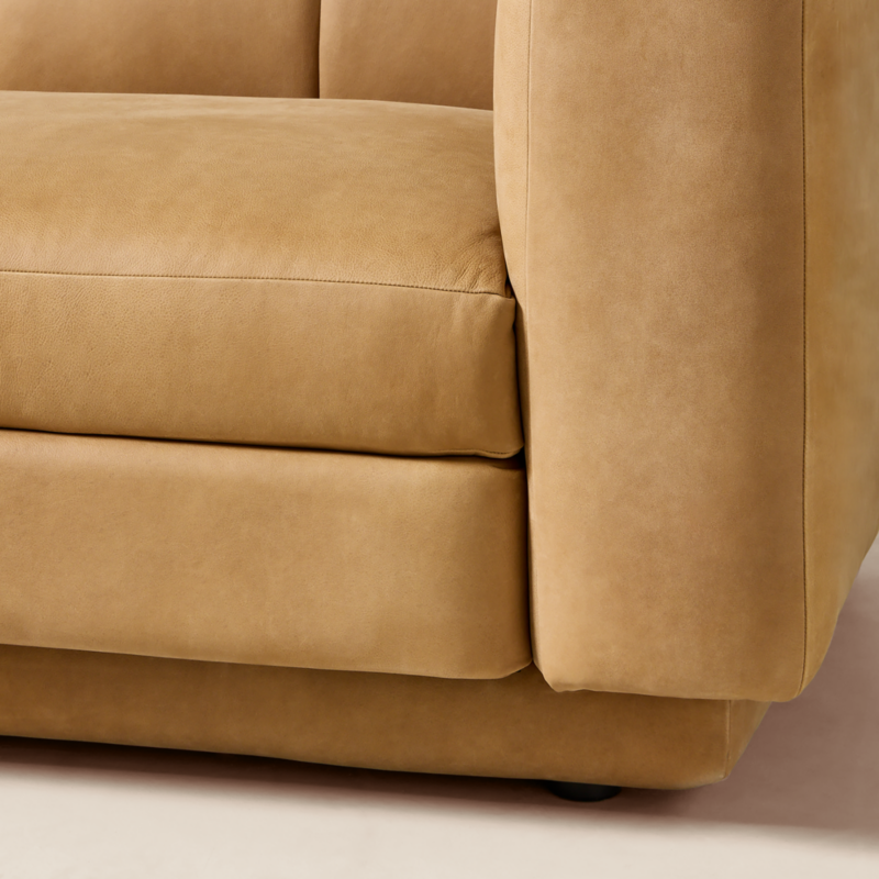 Lawson-Fenning has generous proportions for gathering and relaxing. A deep seat is complemented by a relaxed back with wide-set channel tufting that highlights the fine aniline leather upholstery. Rustic and intentionally raw leather is left unsanded and free of fillers, showcasing natural scars and markings for a rugged, one-of-a-kind look. Waxed by hand for subtle tonal depth, it softens and develops a rich patina over time—only getting better the more it's lived in. Each piece is assembled by hand to ensure a level of quality befitting the design. CB2 exclusive.