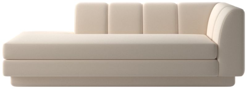 Taking stylistic nods from 1970s Italian design and the designers' own laid-back Southern California aesthetic, left-arm chaise by Lawson-Fenning has generous proportions for gathering and relaxing. A deep seat is complemented by a relaxed back with wide-set channel tufting. Each piece is assembled by hand to ensure a level of quality befitting the design. Coordinates with other pieces from the Yarrow collection to create a sectional sofa. CB2 exclusive.