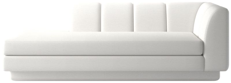 Taking stylistic nods from 1970s Italian design and the designers' own laid-back Southern California aesthetic, left-arm chaise by Lawson-Fenning has generous proportions for gathering and relaxing. A deep seat is complemented by a relaxed back with wide-set channel tufting. Each piece is assembled by hand to ensure a level of quality befitting the design. Coordinates with other pieces from the Yarrow collection to create a sectional sofa. CB2 exclusive.