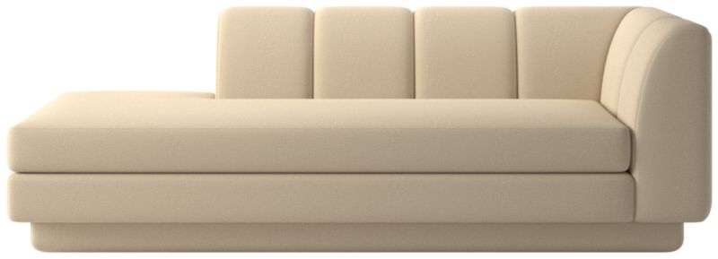 Taking stylistic nods from 1970s Italian design and the designers' own laid-back Southern California aesthetic, left-arm chaise by Lawson-Fenning has generous proportions for gathering and relaxing. A deep seat is complemented by a relaxed back with wide-set channel tufting. Each piece is assembled by hand to ensure a level of quality befitting the design. Coordinates with other pieces from the Yarrow collection to create a sectional sofa. CB2 exclusive.