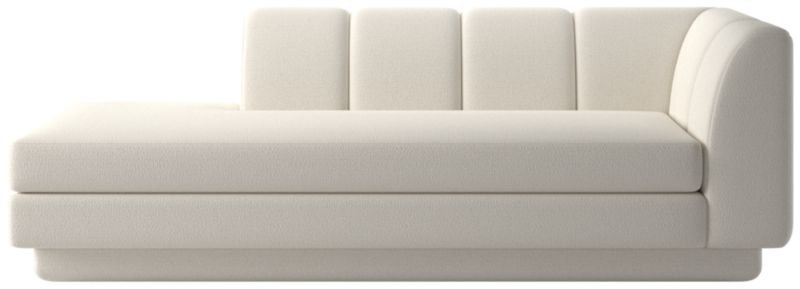Taking stylistic nods from 1970s Italian design and the designers' own laid-back Southern California aesthetic, left-arm chaise by Lawson-Fenning has generous proportions for gathering and relaxing. A deep seat is complemented by a relaxed back with wide-set channel tufting. Each piece is assembled by hand to ensure a level of quality befitting the design. Coordinates with other pieces from the Yarrow collection to create a sectional sofa. CB2 exclusive.