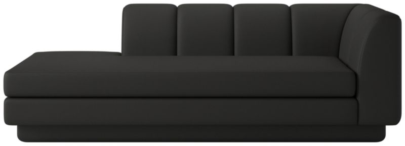 Taking stylistic nods from 1970s Italian design and the designers' own laid-back Southern California aesthetic, left-arm chaise by Lawson-Fenning has generous proportions for gathering and relaxing. A deep seat is complemented by a relaxed back with wide-set channel tufting. Each piece is assembled by hand to ensure a level of quality befitting the design. Coordinates with other pieces from the Yarrow collection to create a sectional sofa. CB2 exclusive.