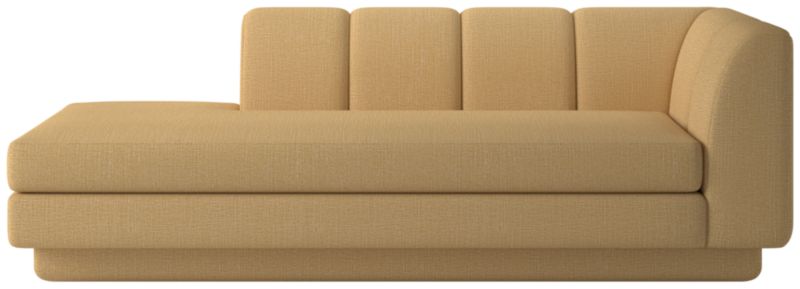 Taking stylistic nods from 1970s Italian design and the designers' own laid-back Southern California aesthetic, left-arm chaise by Lawson-Fenning has generous proportions for gathering and relaxing. A deep seat is complemented by a relaxed back with wide-set channel tufting. Each piece is assembled by hand to ensure a level of quality befitting the design. Coordinates with other pieces from the Yarrow collection to create a sectional sofa. CB2 exclusive.