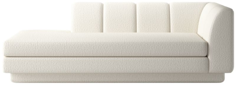 Taking stylistic nods from 1970s Italian design and the designers' own laid-back Southern California aesthetic, left-arm chaise by Lawson-Fenning has generous proportions for gathering and relaxing. A deep seat is complemented by a relaxed back with wide-set channel tufting. Each piece is assembled by hand to ensure a level of quality befitting the design. Coordinates with other pieces from the Yarrow collection to create a sectional sofa. CB2 exclusive.