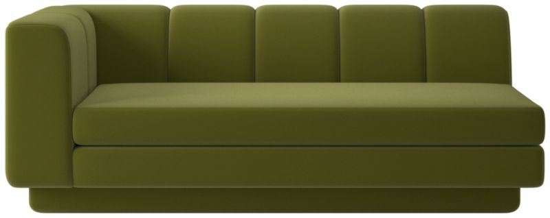 Taking stylistic nods from 1970s Italian design and the designers' own laid-back Southern California aesthetic, left-arm sofa by Lawson-Fenning has generous proportions for gathering and relaxing. A deep seat is complemented by a relaxed back with wide-set channel tufting. Each piece is assembled by hand to ensure a level of quality befitting the design. Coordinates with other pieces from the Yarrow collection to create a sectional sofa. CB2 exclusive.