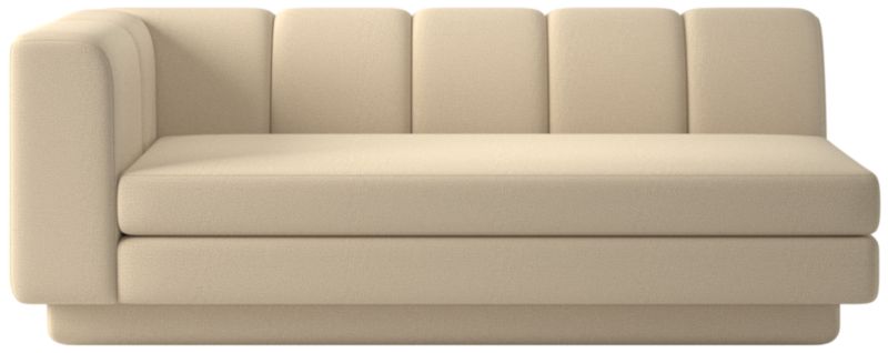 Taking stylistic nods from 1970s Italian design and the designers' own laid-back Southern California aesthetic, left-arm sofa by Lawson-Fenning has generous proportions for gathering and relaxing. A deep seat is complemented by a relaxed back with wide-set channel tufting. Each piece is assembled by hand to ensure a level of quality befitting the design. Coordinates with other pieces from the Yarrow collection to create a sectional sofa. CB2 exclusive.