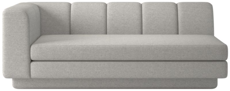 Taking stylistic nods from 1970s Italian design and the designers' own laid-back Southern California aesthetic, left-arm sofa by Lawson-Fenning has generous proportions for gathering and relaxing. A deep seat is complemented by a relaxed back with wide-set channel tufting. Each piece is assembled by hand to ensure a level of quality befitting the design. Coordinates with other pieces from the Yarrow collection to create a sectional sofa. CB2 exclusive.
