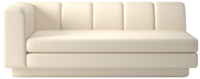 Taking stylistic nods from 1970s Italian design and the designers' own laid-back Southern California aesthetic, left-arm sofa by Lawson-Fenning has generous proportions for gathering and relaxing. A deep seat is complemented by a relaxed back with wide-set channel tufting. Each piece is assembled by hand to ensure a level of quality befitting the design. Coordinates with other pieces from the Yarrow collection to create a sectional sofa. CB2 exclusive.