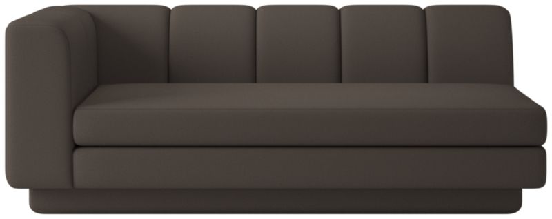 Taking stylistic nods from 1970s Italian design and the designers' own laid-back Southern California aesthetic, left-arm sofa by Lawson-Fenning has generous proportions for gathering and relaxing. A deep seat is complemented by a relaxed back with wide-set channel tufting. Each piece is assembled by hand to ensure a level of quality befitting the design. Coordinates with other pieces from the Yarrow collection to create a sectional sofa. CB2 exclusive.
