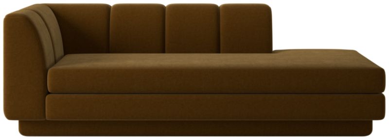 Taking stylistic nods from 1970s Italian design and the designers' own laid-back Southern California aesthetic, right-arm chaise by Lawson-Fenning has generous proportions for gathering and relaxing. A deep seat is complemented by a relaxed back with wide-set channel tufting. Each piece is assembled by hand to ensure a level of quality befitting the design. Coordinates with other pieces from the Yarrow collection to create a sectional sofa. CB2 exclusive.