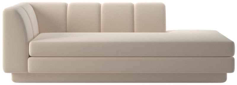 Taking stylistic nods from 1970s Italian design and the designers' own laid-back Southern California aesthetic, right-arm chaise by Lawson-Fenning has generous proportions for gathering and relaxing. A deep seat is complemented by a relaxed back with wide-set channel tufting. Each piece is assembled by hand to ensure a level of quality befitting the design. Coordinates with other pieces from the Yarrow collection to create a sectional sofa. CB2 exclusive.