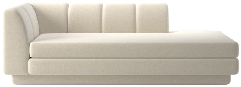 Taking stylistic nods from 1970s Italian design and the designers' own laid-back Southern California aesthetic, right-arm chaise by Lawson-Fenning has generous proportions for gathering and relaxing. A deep seat is complemented by a relaxed back with wide-set channel tufting. Each piece is assembled by hand to ensure a level of quality befitting the design. Coordinates with other pieces from the Yarrow collection to create a sectional sofa. CB2 exclusive.