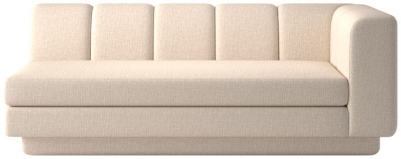 Taking stylistic nods from 1970s Italian design and the designers' own laid-back Southern California aesthetic, right-arm sofa by Lawson-Fenning has generous proportions for gathering and relaxing. A deep seat is complemented by a relaxed back with wide-set channel tufting. Each piece is assembled by hand to ensure a level of quality befitting the design. Coordinates with other pieces from the Yarrow collection to create a sectional sofa. CB2 exclusive.
